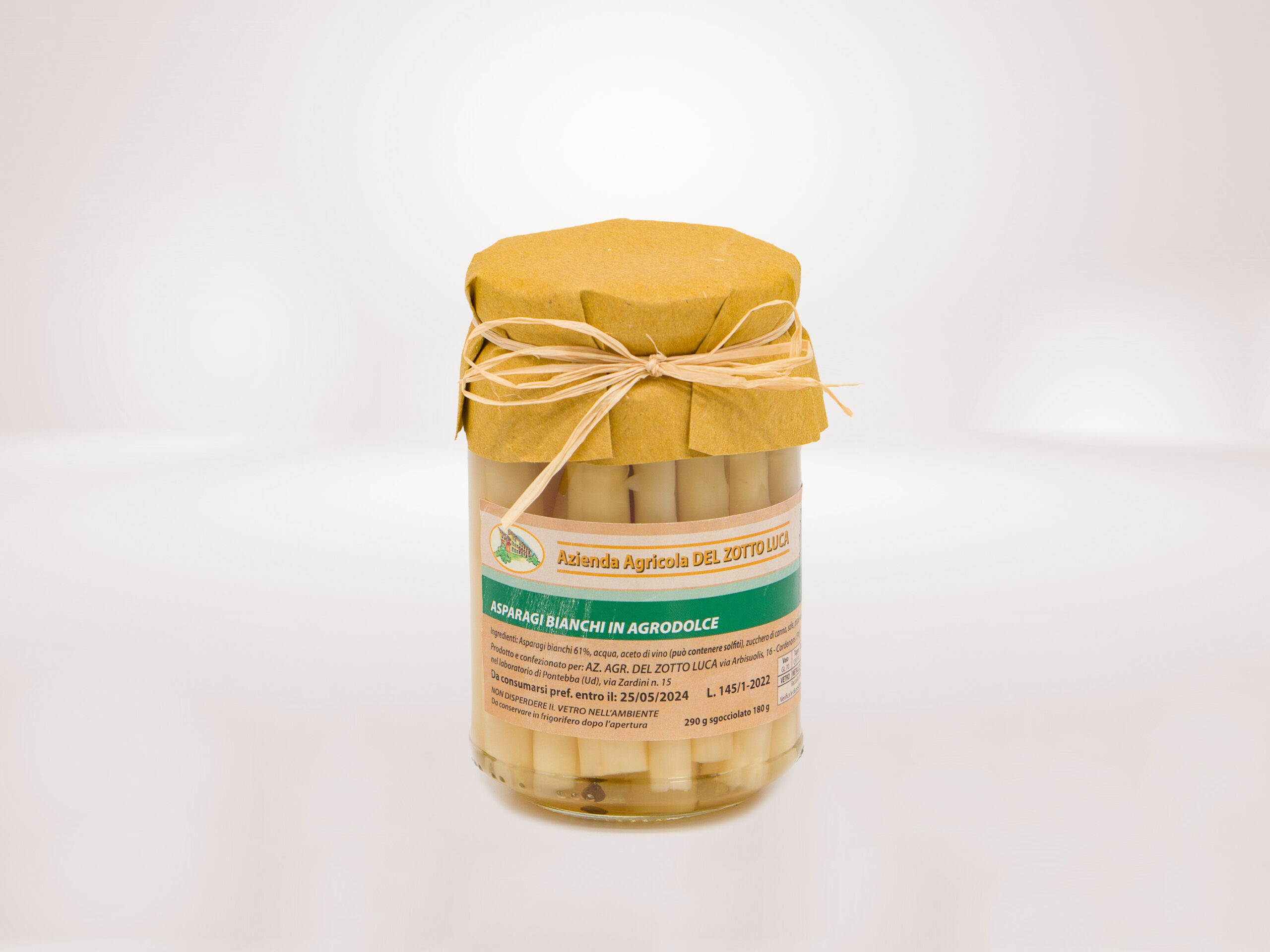 Asparagi bianchi in agrodolce con: asparagi bianchi 65%, acqua, aceto di vino (può contenere solfit…