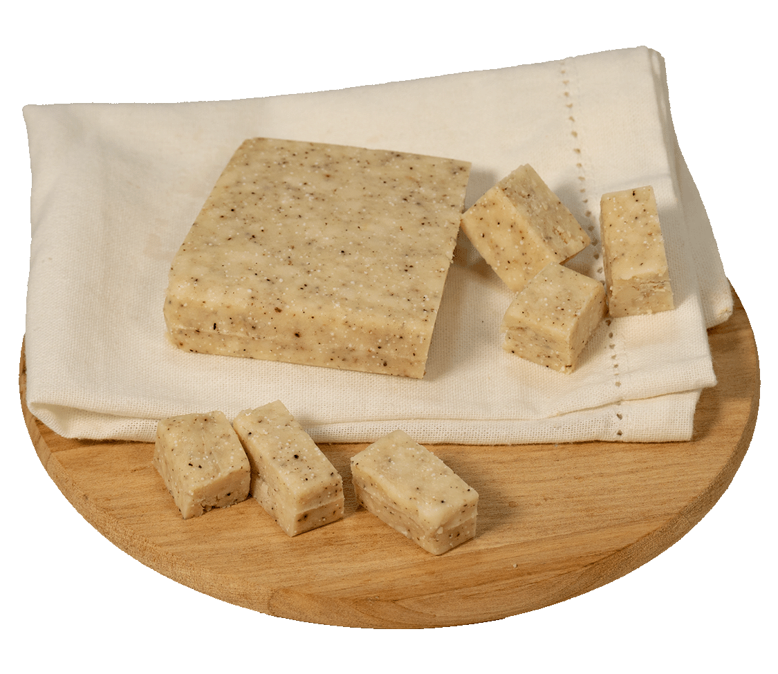 Il Formadi Frant al Pepe è un formaggio friulano unico, ottenuto dalla lavorazione di diverse forme di formaggio vaccino. Durante la fase di frantumazione, il formaggio viene insaporito con pepe nero, creando un equilibrio perfetto tra il sapore intenso del formaggio stagionato e la nota piccante del pepe. Ideale da gustare con vini rossi strutturati o come ingrediente speciale per piatti tipici friulani.